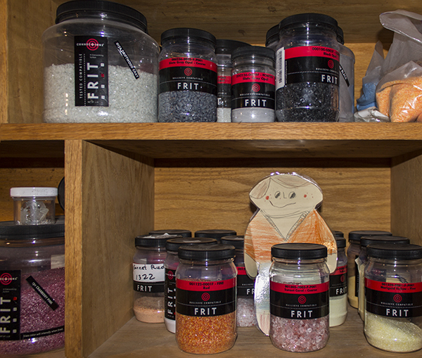 I couldn’t talk Flat Stanley into getting his face painted, so he watched while my husband and I did some fused glass art. We use special glass that comes flat (Stanley’s favorite) in chunks or powder called frit, and in skinny sticks called stringers.